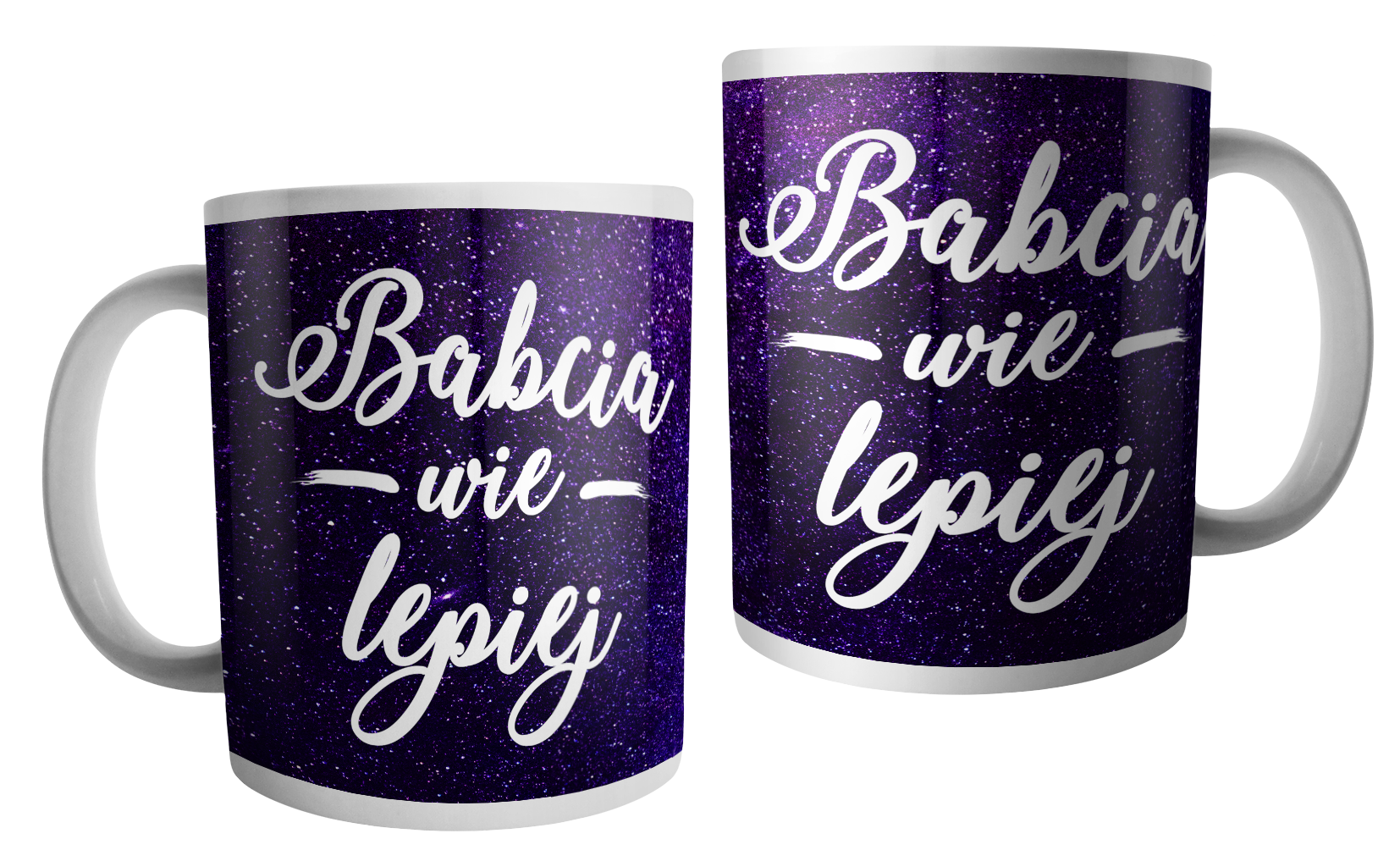 Grafiki znajdują się po obu stronach kubka, dlatego jest to świetny prezent dla osób prawo, jak i leworęcznych.
