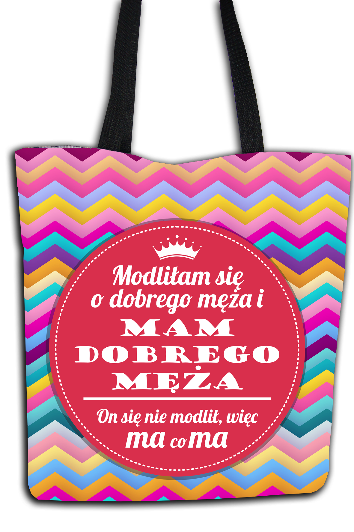 Wysokiej jakości torba z poliestru, ozdobiona jednym z naszych kolorowych projektów.
