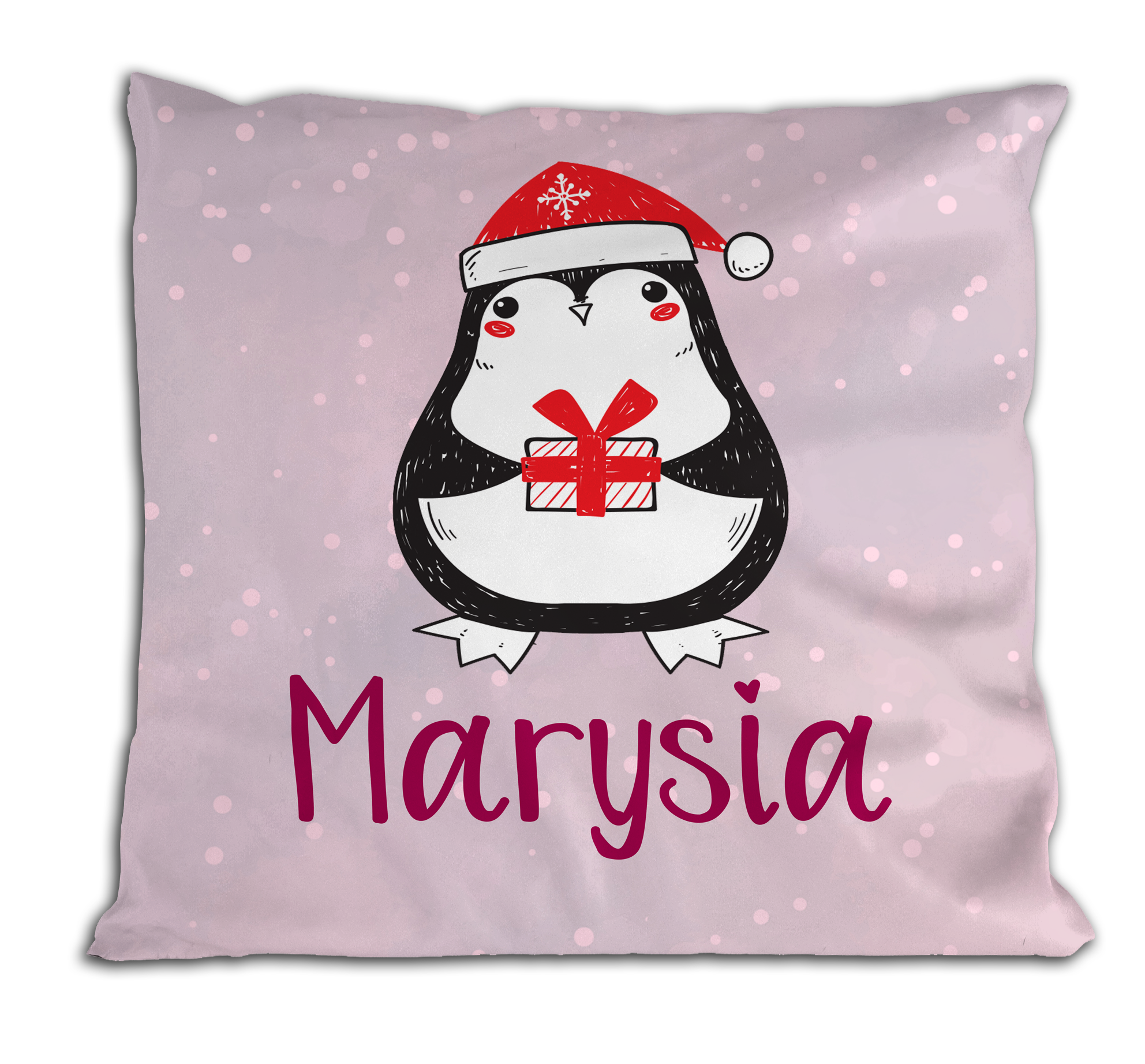 Pingwinek (róż) - poduszka personalizowana z imieniem