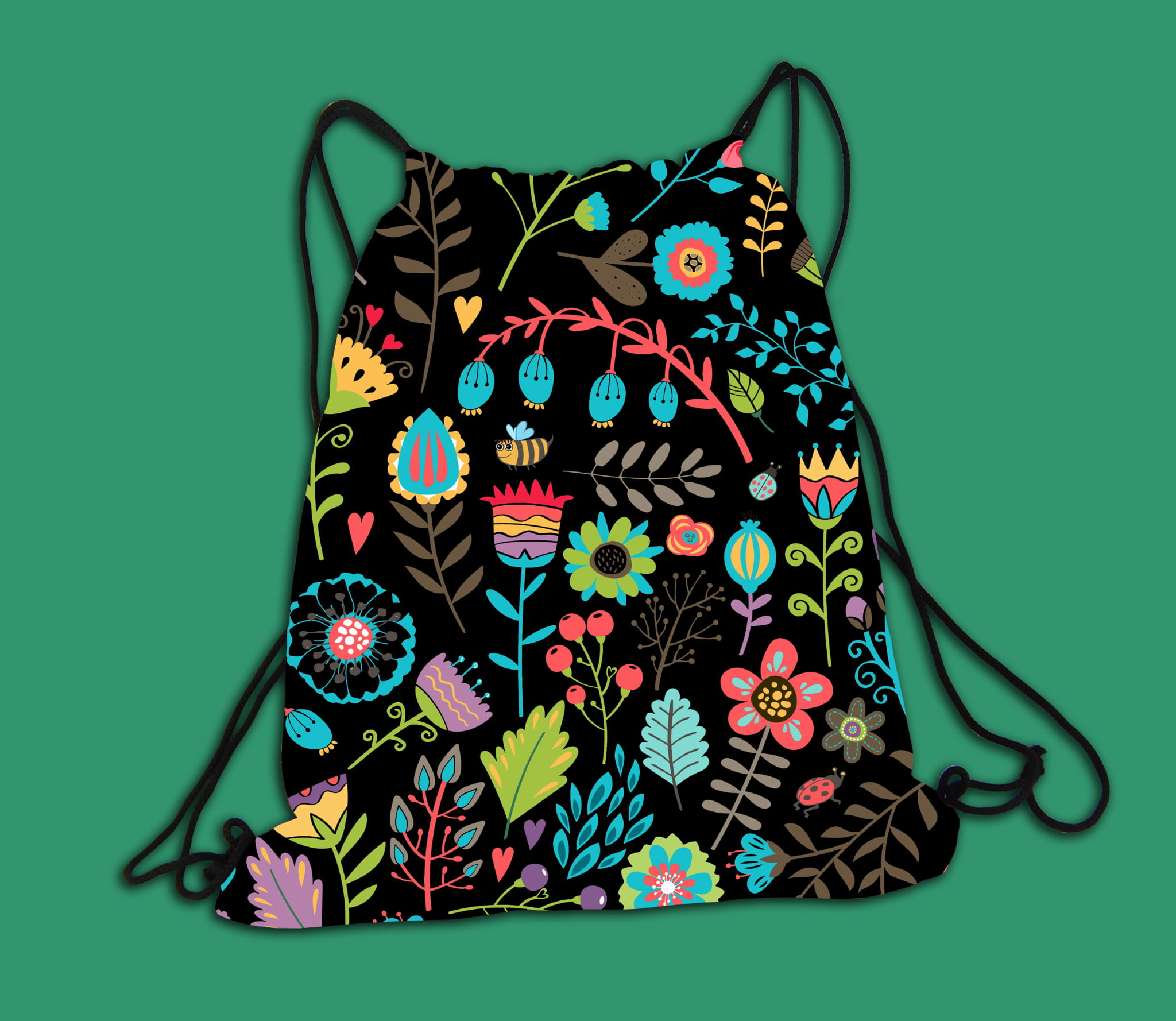 Plecak - worek - Kolorowy wzór - czarny
