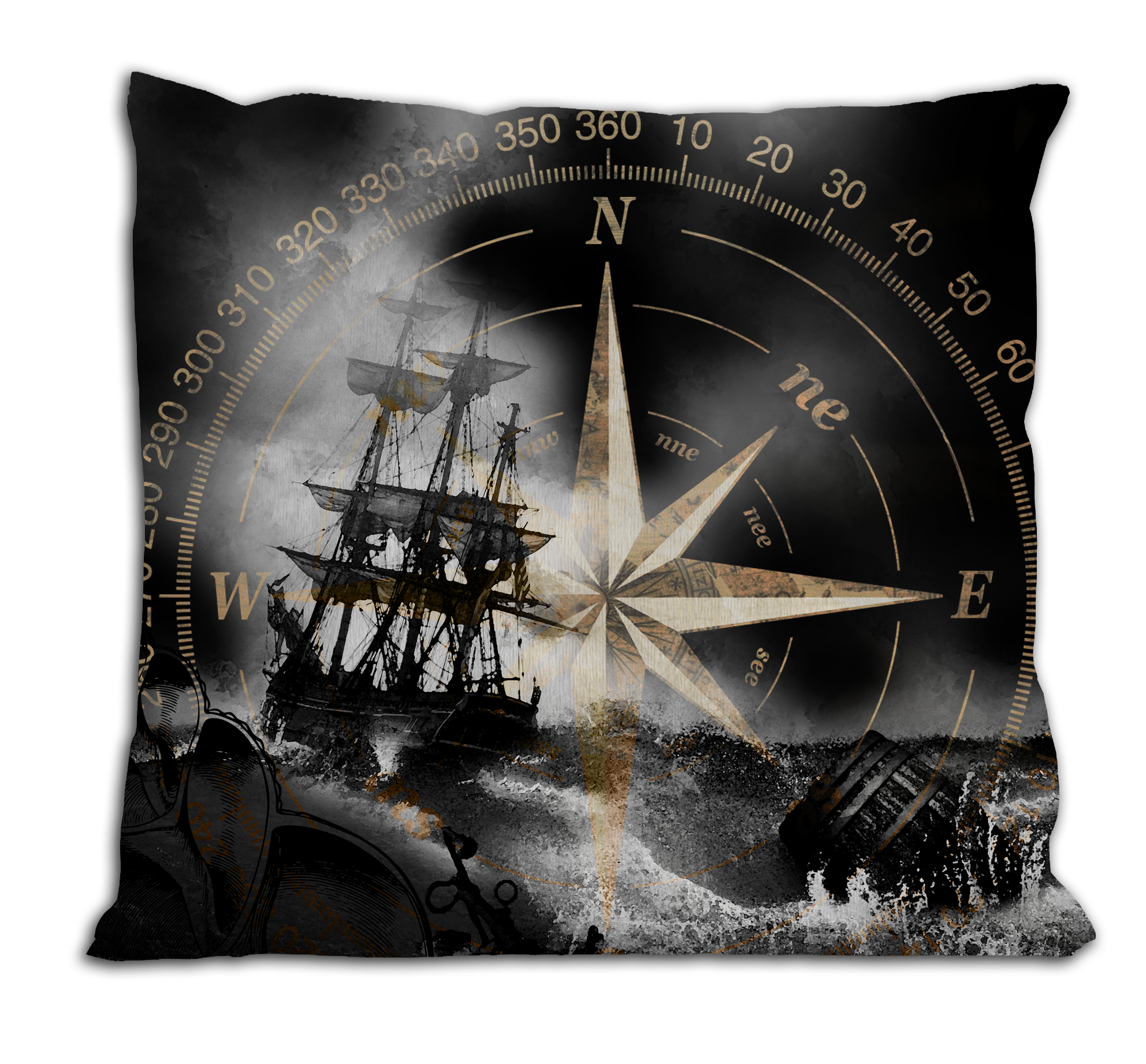 Statek na czarnym tle - poduszka z wypełnieniem