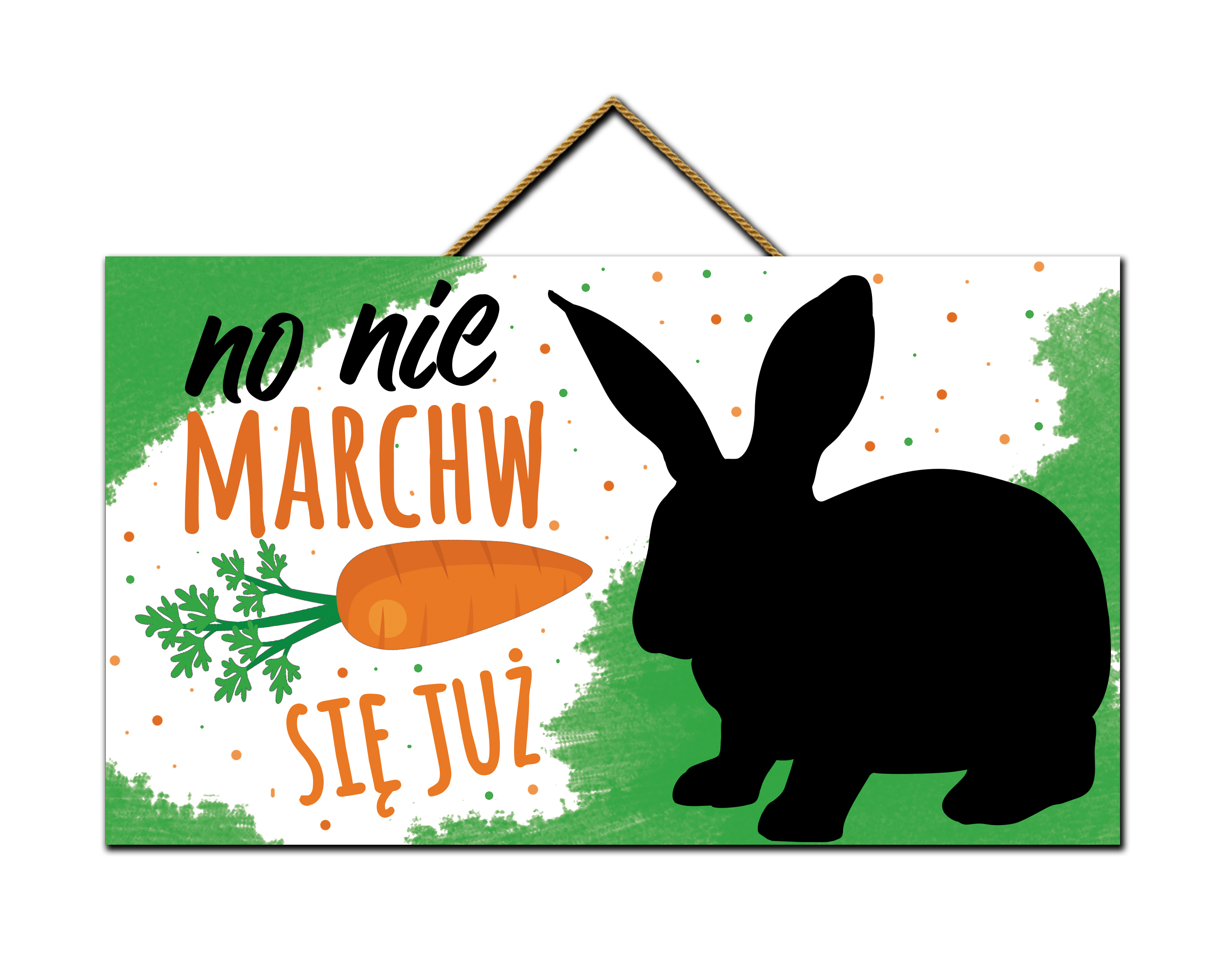 Płyta HDF oklejona trwałą folią z nadrukiem cyfrowym. Tabliczka posiada sznurek naturalny.