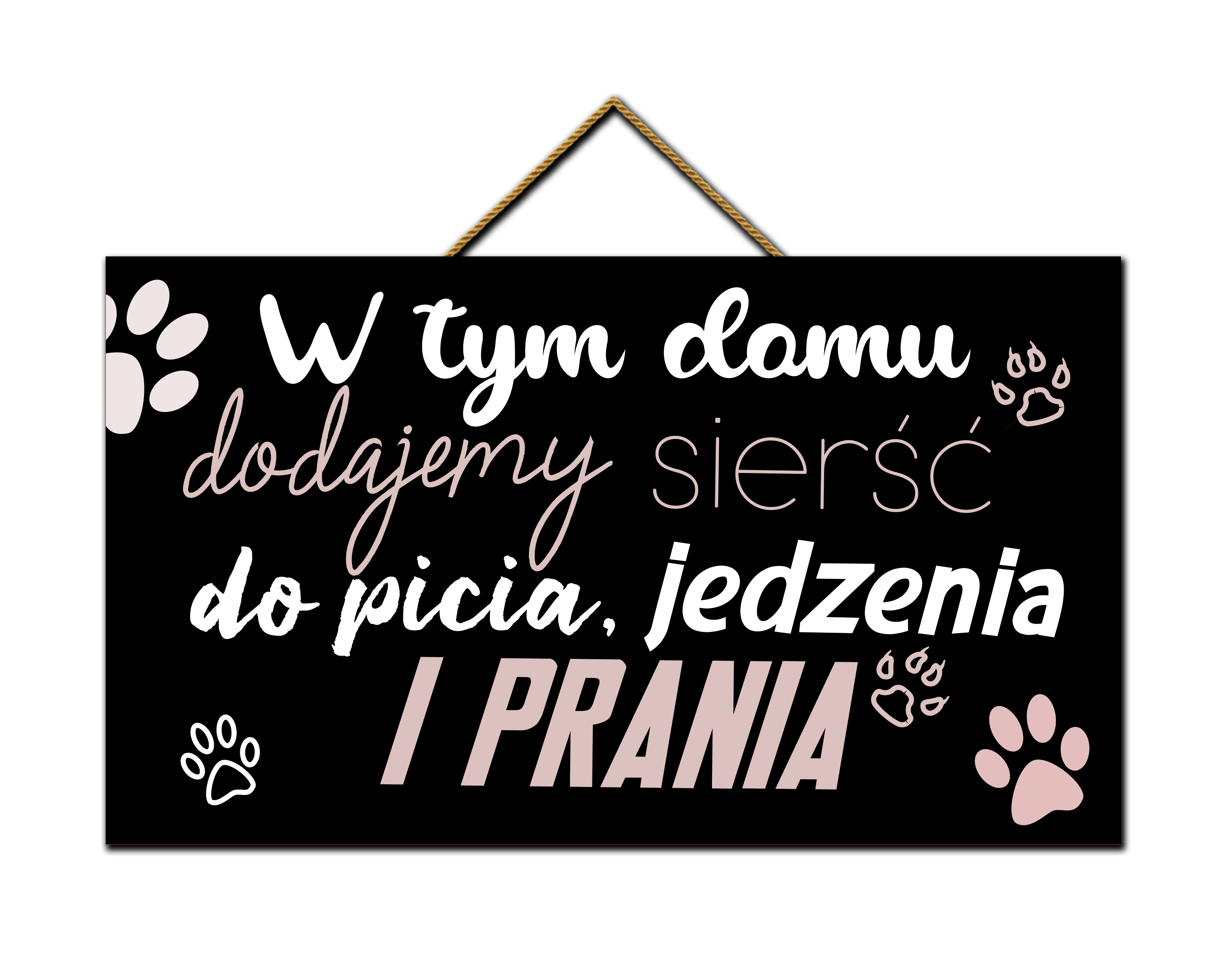 Płyta HDF oklejona trwałą folią z nadrukiem cyfrowym. Tabliczka posiada sznurek naturalny.