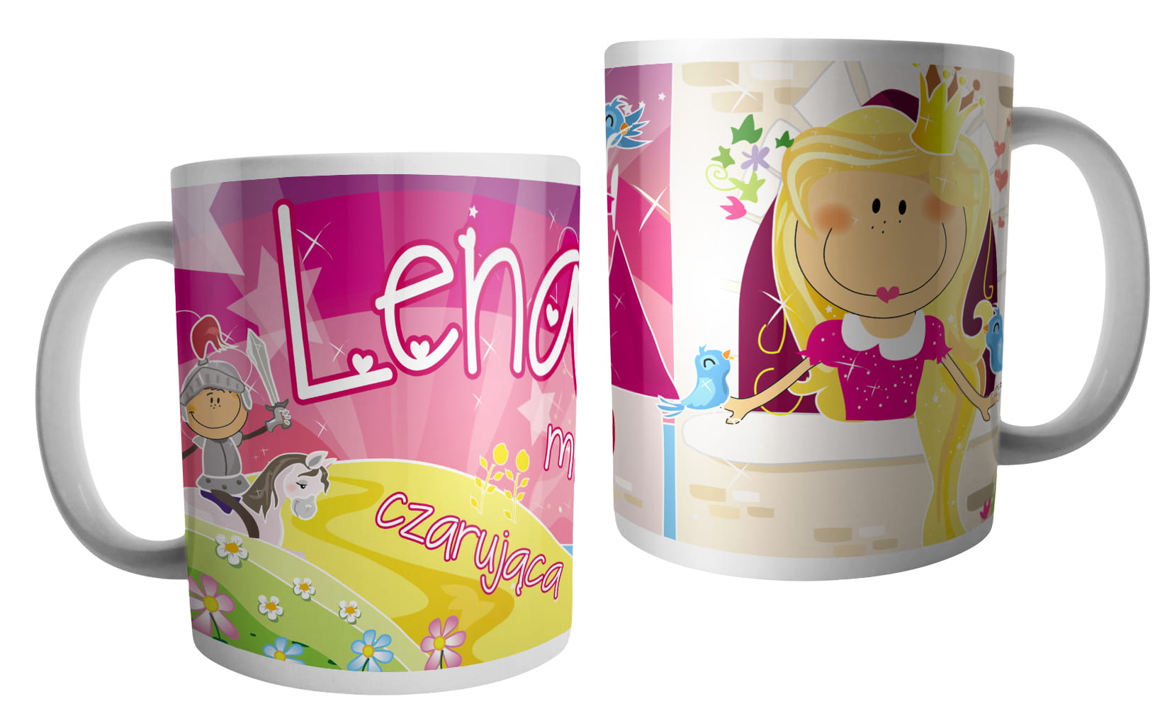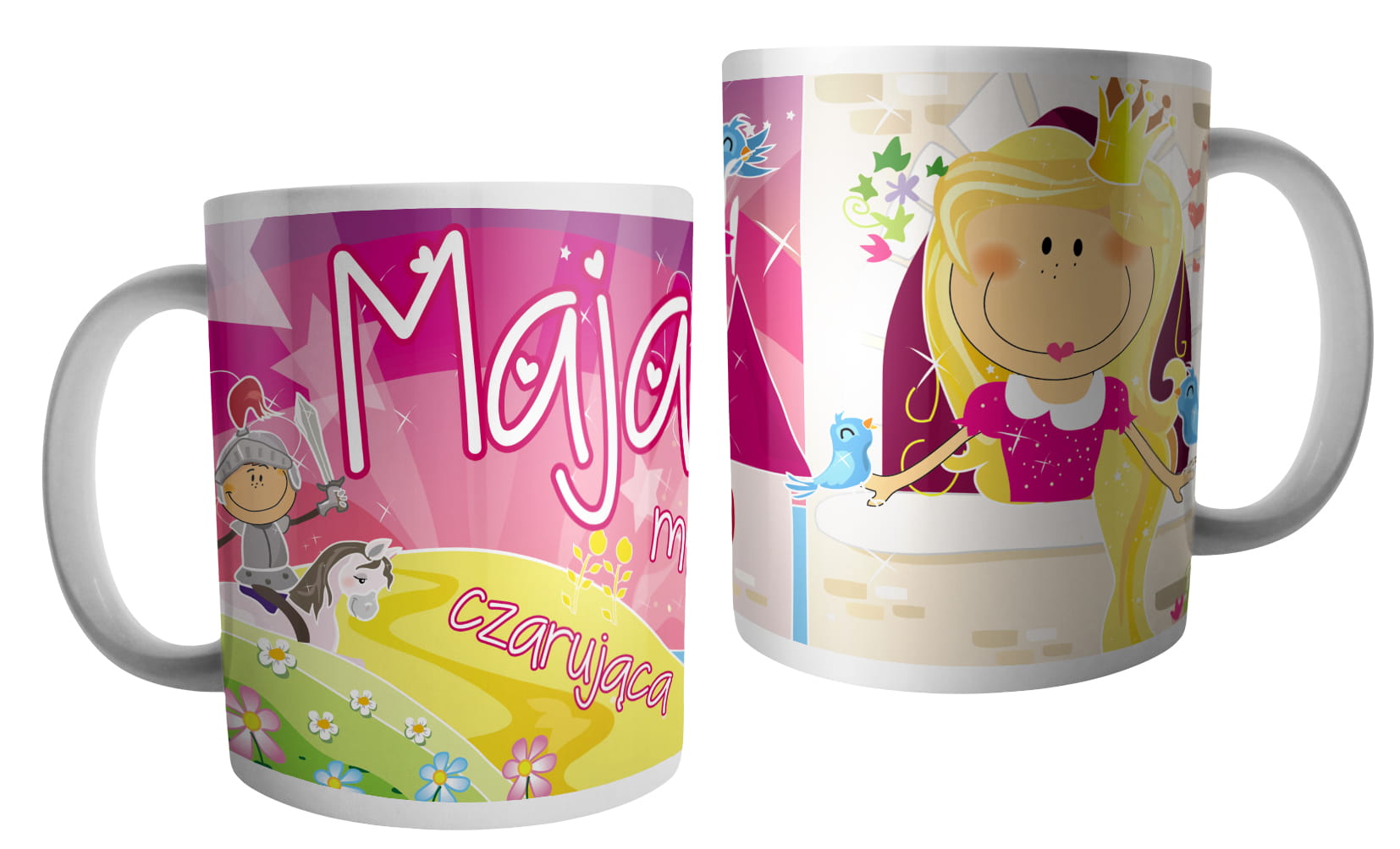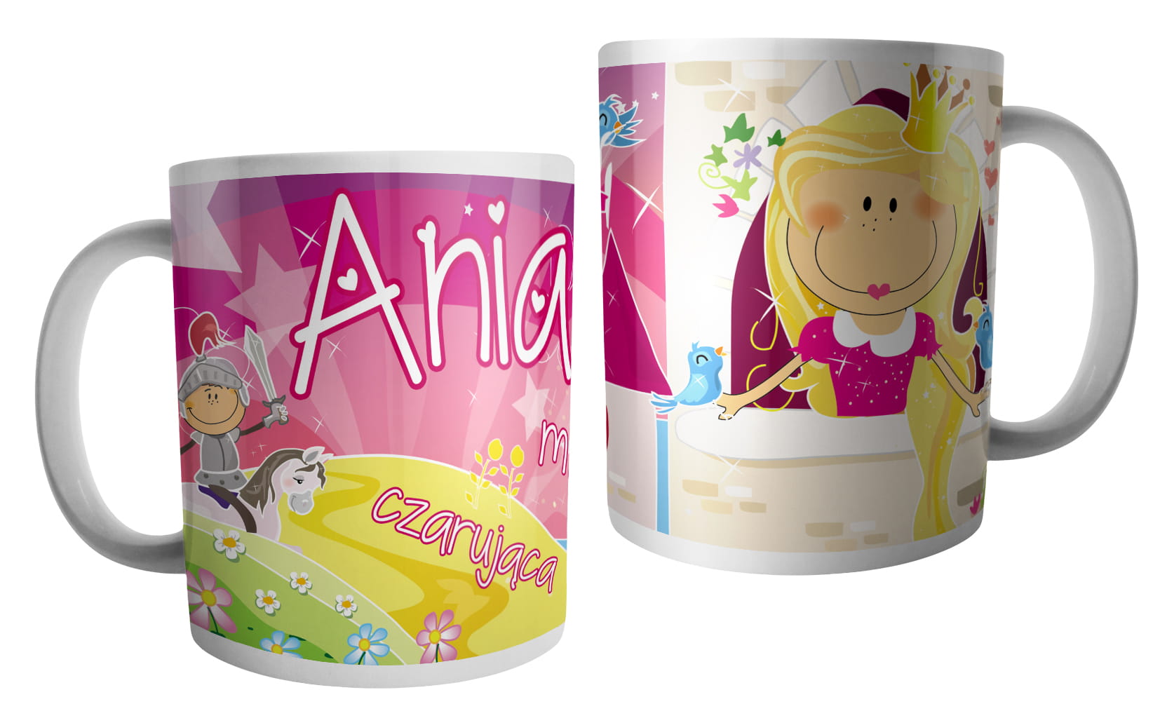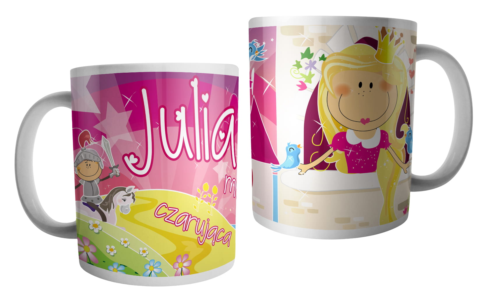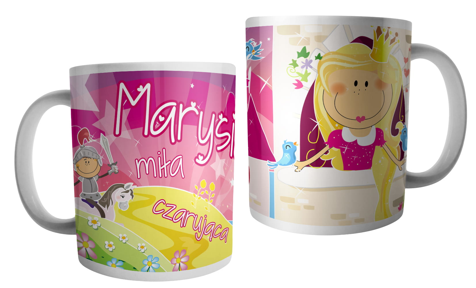 (WYBIERZ SWOJE IMIĘ) - kubek dla dziewczynki - RYCERZE I KSIĘŻNICZKI