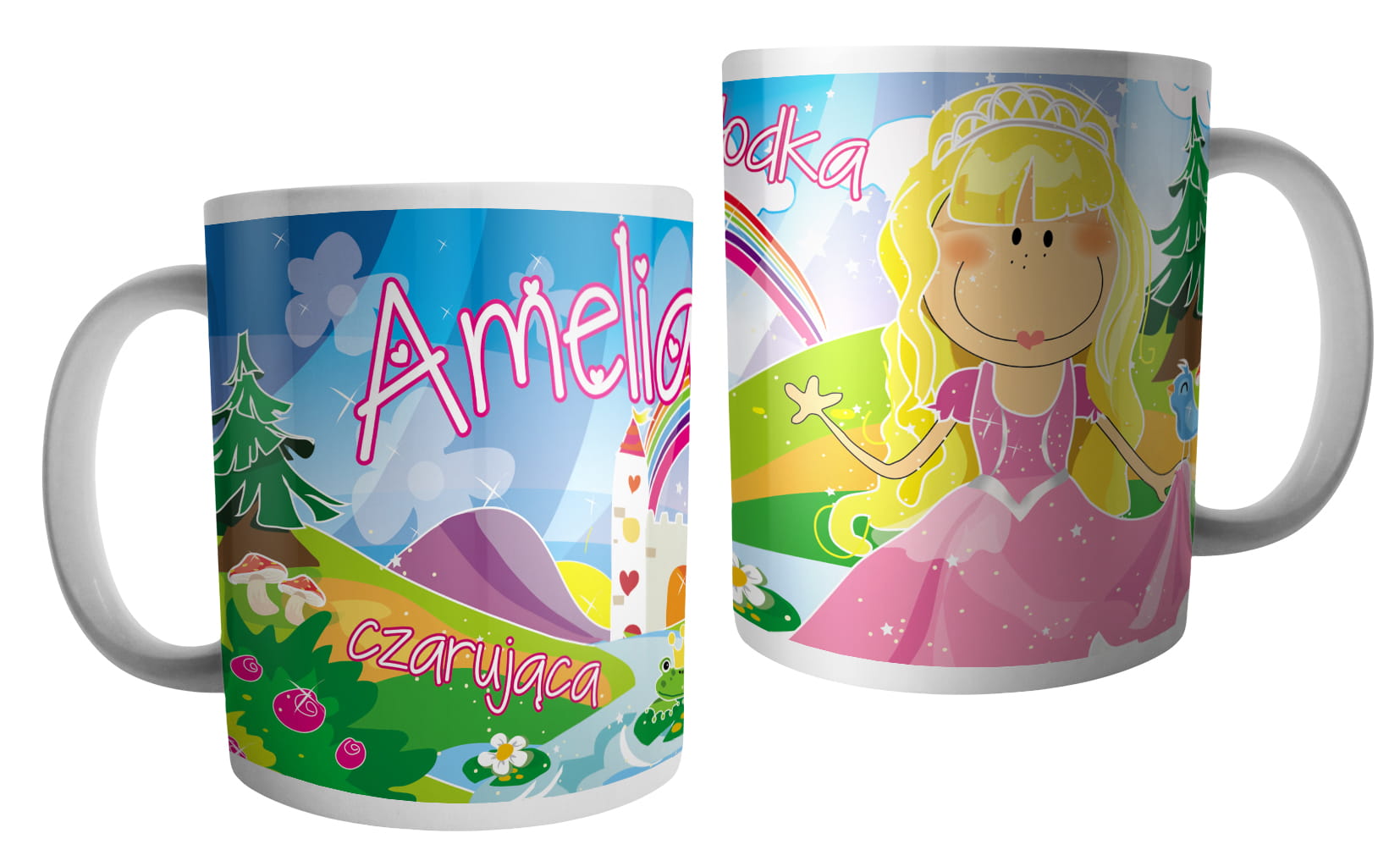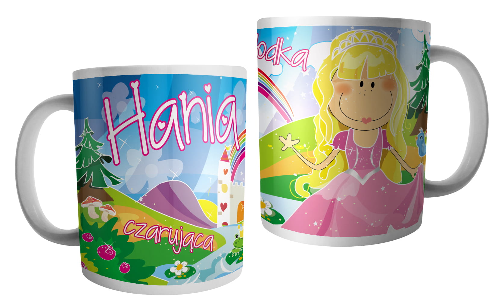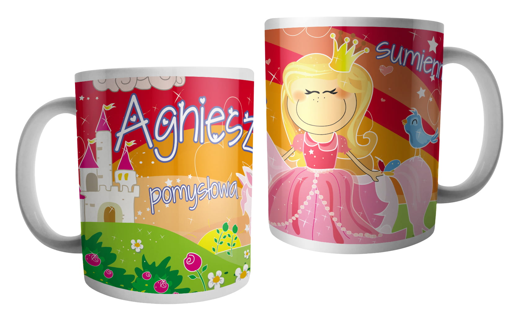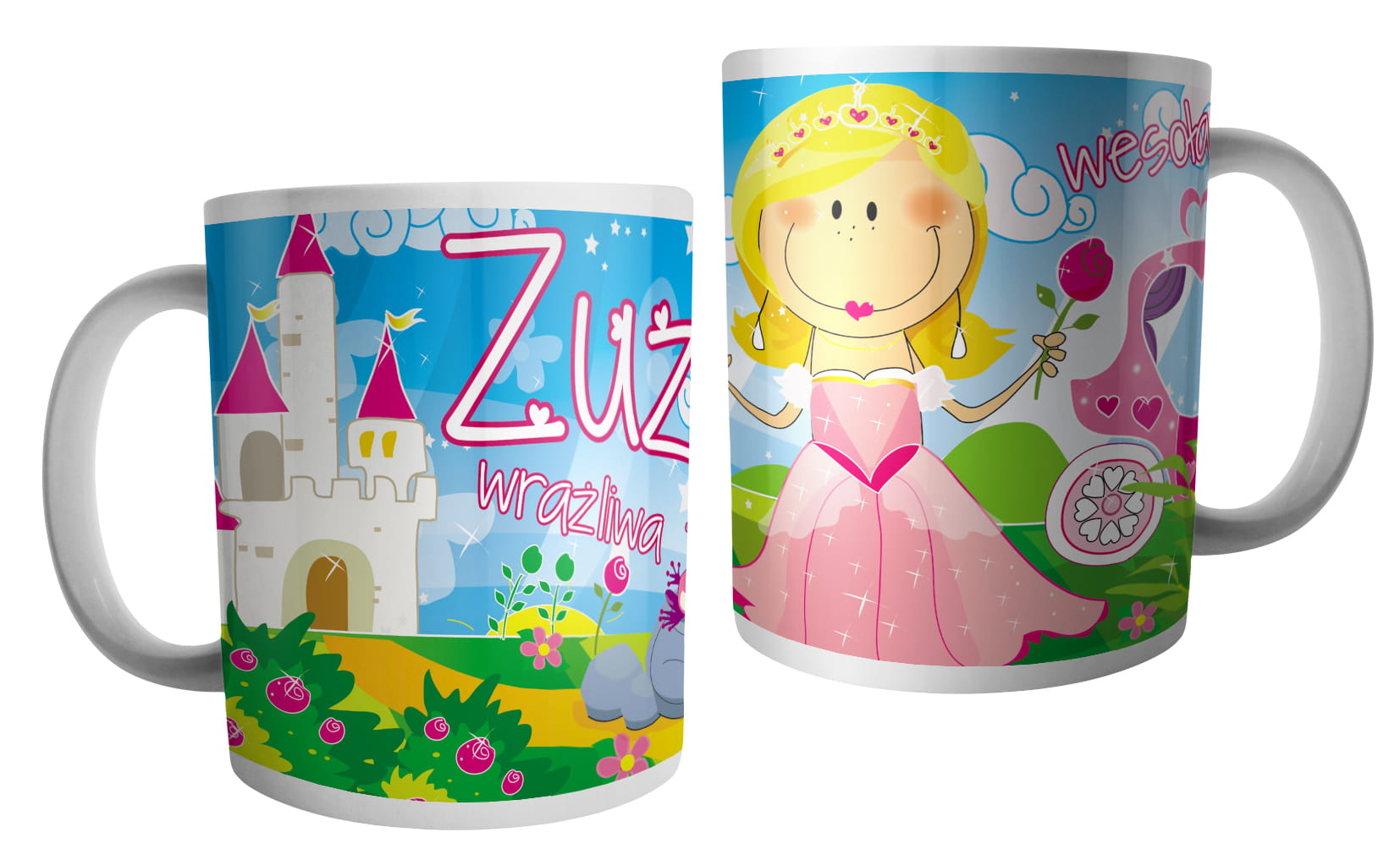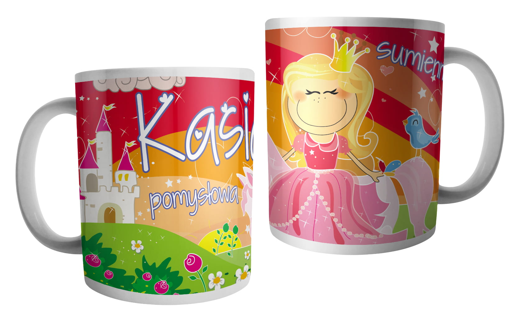 (WYBIERZ SWOJE IMIĘ) - kubek dla dziewczynki - RYCERZE I KSIĘŻNICZKI