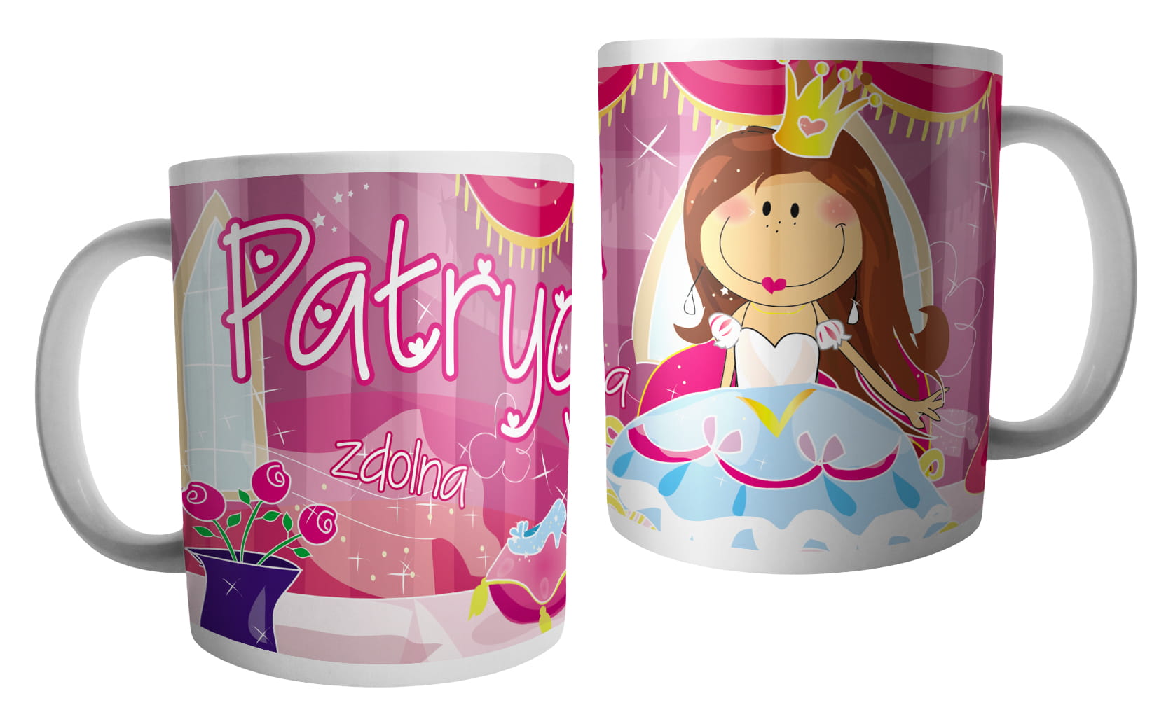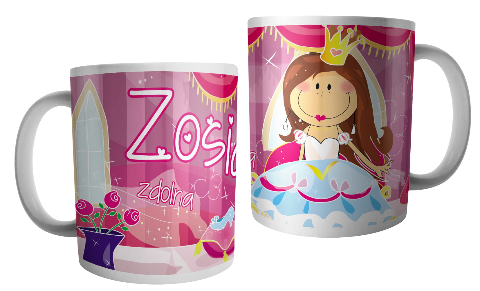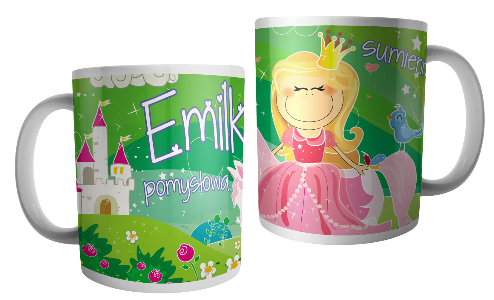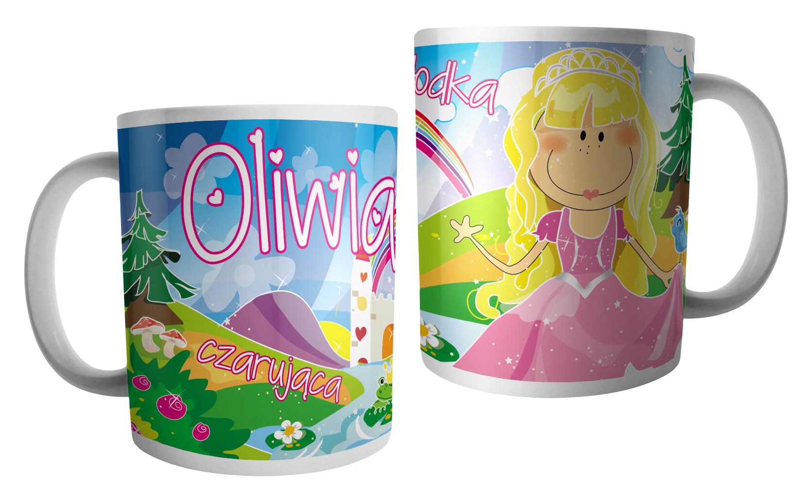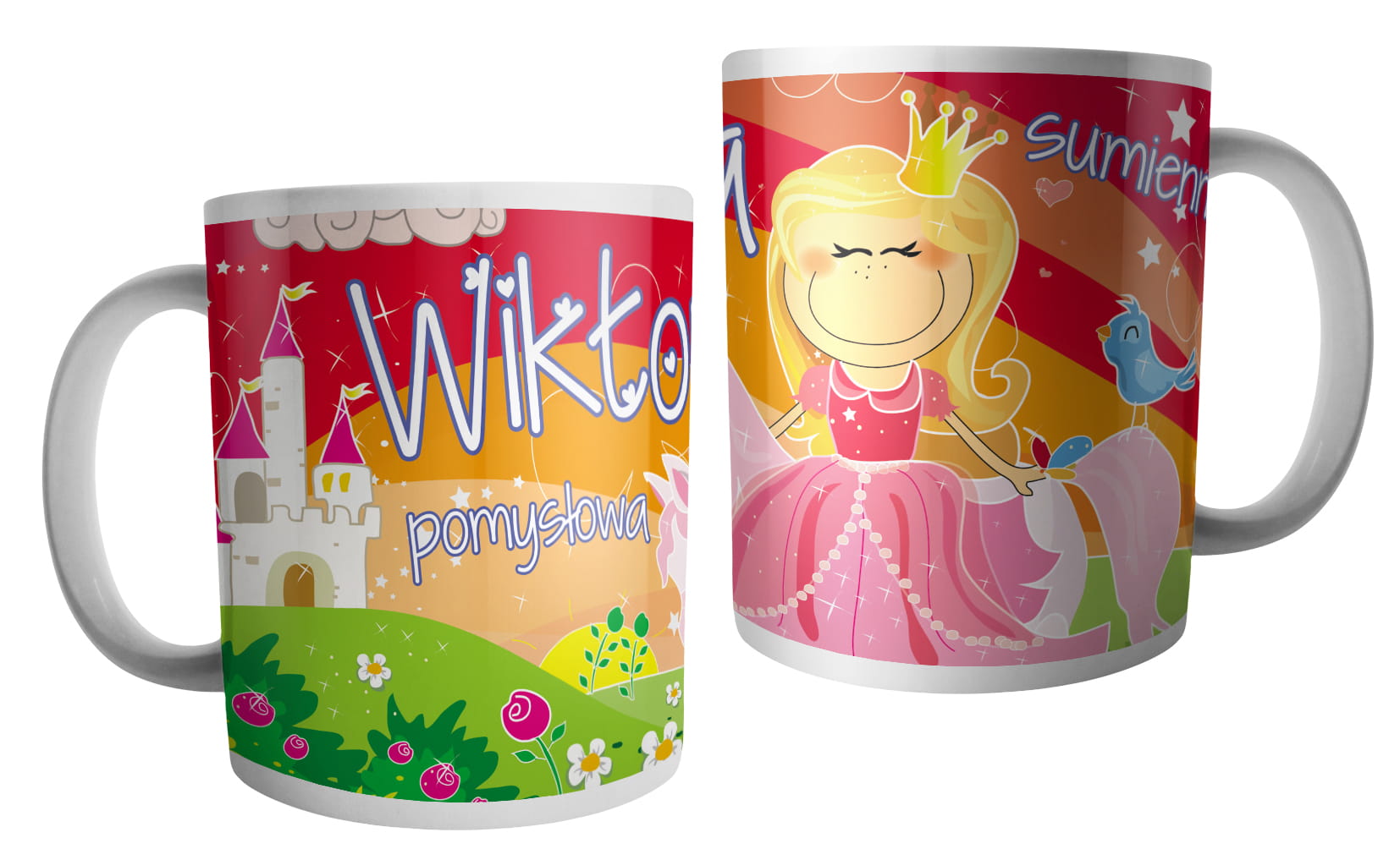 (WYBIERZ SWOJE IMIĘ) - kubek dla dziewczynki - RYCERZE I KSIĘŻNICZKI