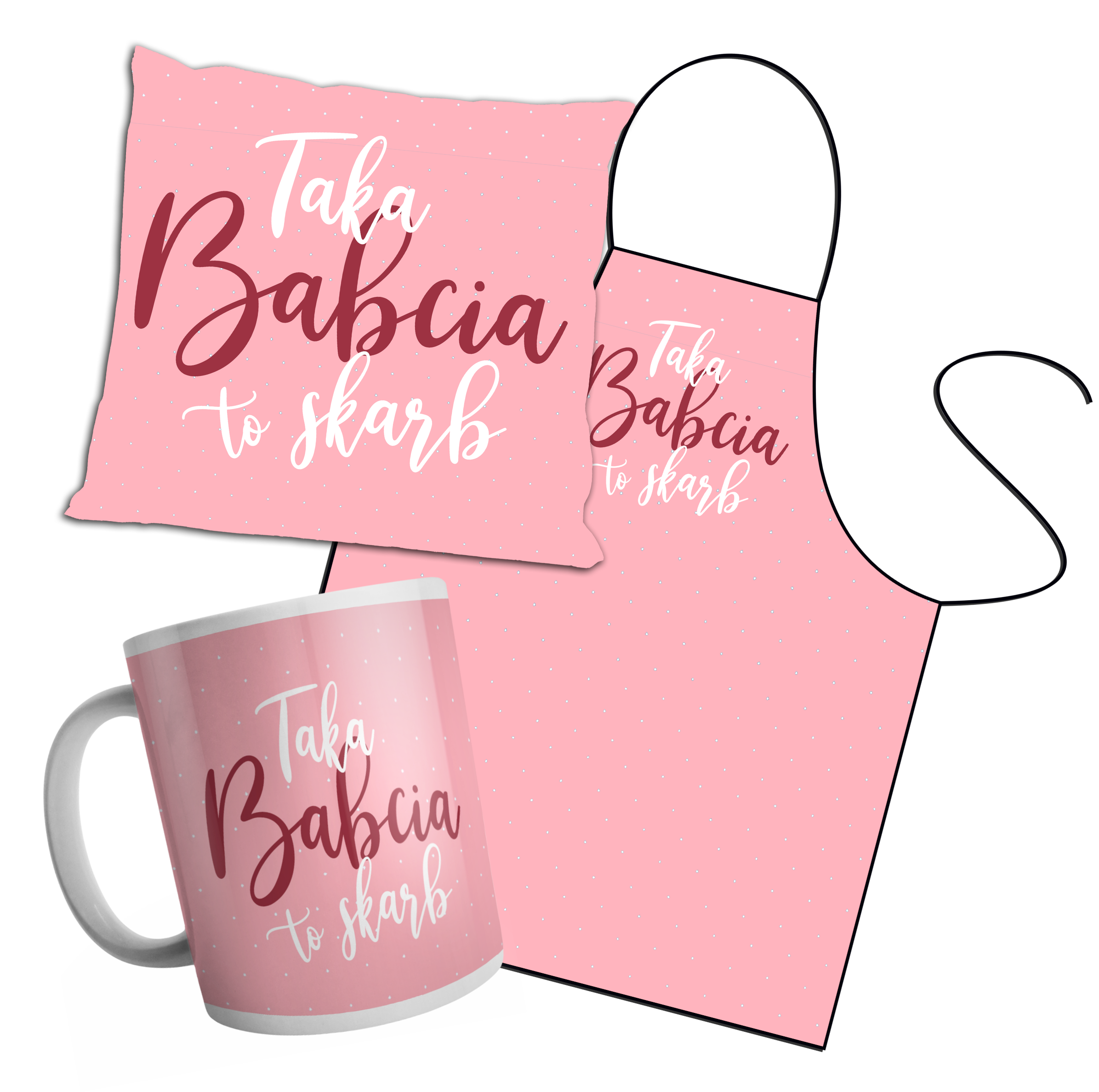 Zestaw fartuszek, poduszka i kubek - Taka babcia to skarb