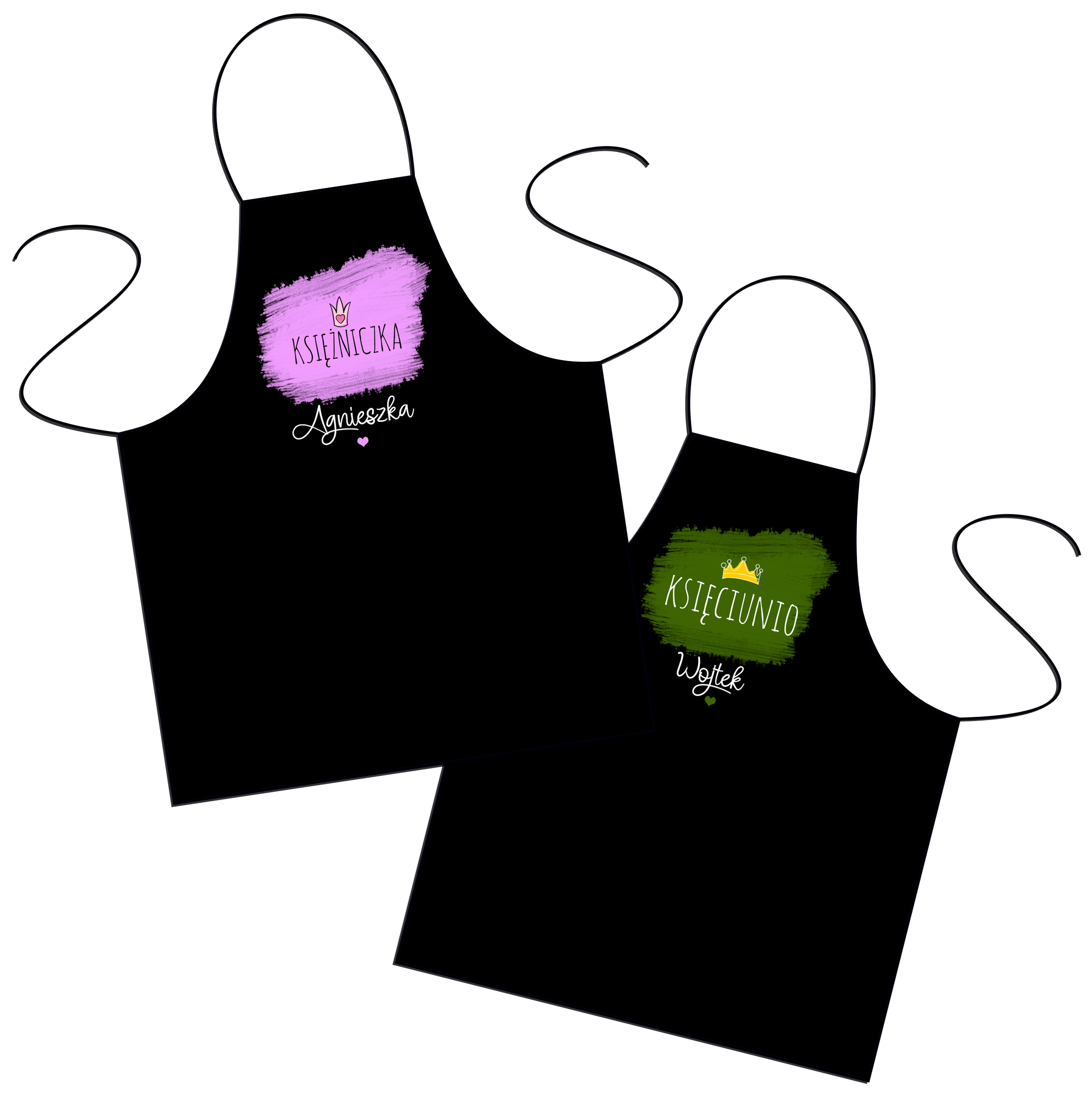 Zestaw fartuszków personalizowanych - Księżniczka, Księciunio